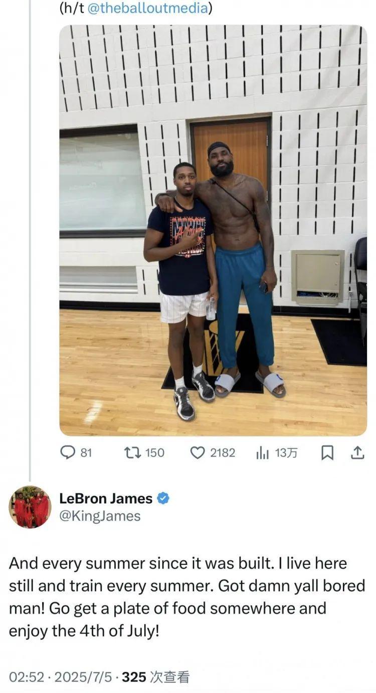 而在今天凌晨现身骑士训练馆,与骑士夏联球员合影,不过很快詹姆斯就回应:“我每年夏天都来,我还住在这。你们这些人真无聊!”