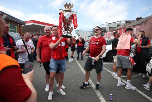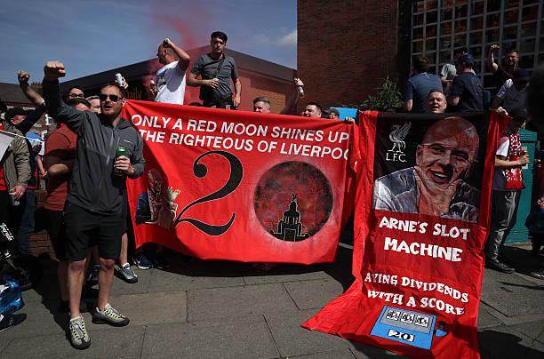 赛前安菲尔德周围已经满是夺冠的气氛,街角的涂鸦、球迷的衣着和横幅、路边的纪念品摊档,都已经为夺冠做好了准备。